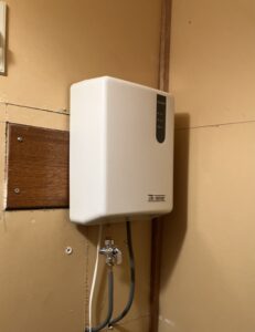 【江別市】ご使用中のオイルサーバーから大きな異音がするため、交換を検討していますとお問合せをくださいましたお客様より、工事のご依頼をいただきました。サンダイヤ製「OUP-91UC」から同メーカー後継機「OUP-901S」へ交換しました。
