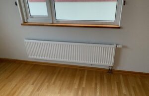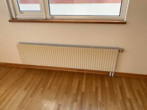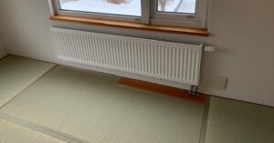 【札幌市清田区】セントラルヒーティングの温水パネルヒーター交換工事。森永エンジニアリング製。高さ400mm×幅1,600mmサイズのパネルヒーターです。