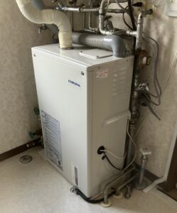 【札幌市清田区】石油温水暖房ボイラー交換工事(半密閉式)。サンポット「CUG-116CSR」からコロナ「UHB-120HR(FF)」へ交換。以前に弊社で給湯ボイラー交換工事をご利用くださいましたお客様より、洗面所で灯油臭が気になりますとお問合せをいただきました。お伺いしたところ、暖房ボイラー本体内で灯油漏れを確認。本体の経年もあり、交換工事のご依頼をいただきました。