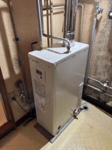 【札幌市中央区】ノーリツ給湯ボイラー交換工事(貯湯式、給湯専用タイプ)ご使用中のボイラーは追いだき付き「OTX―312F」でしたが、追いだき機能をご使用されないとご希望で、給湯専用タイプの製品「OX-3706F」へ交換しました。