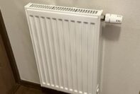 【札幌市西区】玄関の差温水パネルヒーター交換工事のご依頼をいただきました。森永サーモパネル 高さ600㎜×幅400㎜サイズのパネルヒーターです。 【交換前】 【交換後】森永サーモパネル TPO11-604